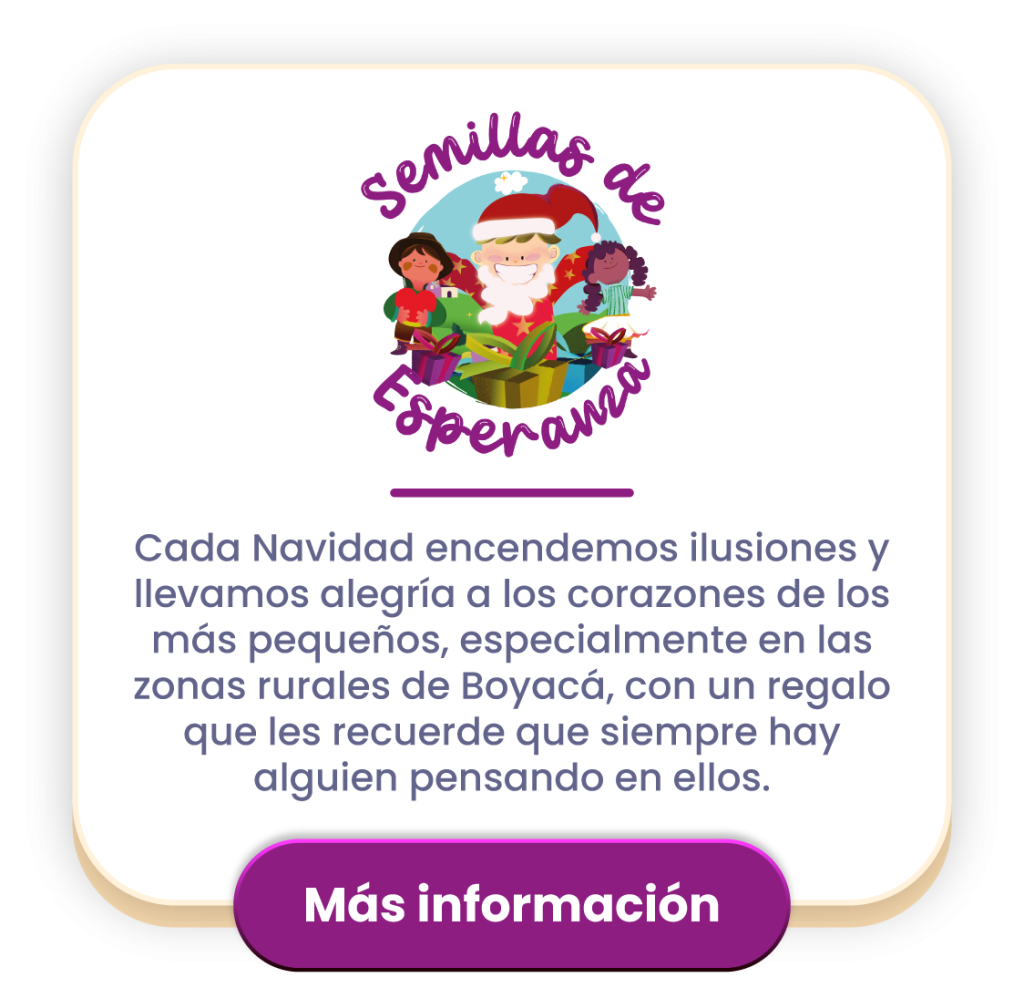 Nos inspira el sueño de un departamento más solidario, donde florezca el bienestar, la inclusión y la esperanza en el hogar de cada familia boyacense. Porque creemos que cuando cuidamos a quienes más requieren de nuestro amor y compromiso, tejemos un futuro más humano para todos.